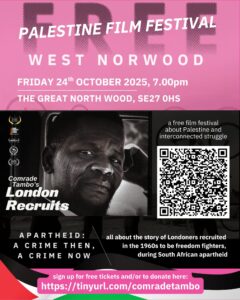West Norwood 4 Palestine Free Film Festival Screening 1: ‘Comrade Tambo’s London Recruits’