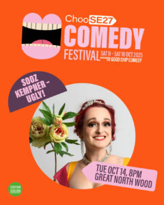 Award-winning comedian Sooz Kempner (Doom in Doctor Who’s Doom’s Day, Amazon Prime’s Dinner With the Parents) is back with a brand-new show about beauty, ageing, trolling and Barbra Streisand. When the world seems ugly it’s hard to feel beautiful, not like when you’re seven and Final Score is on and nothing has ever felt more beautiful because what follows is Big Break, the Generation Game, Noel’s House Party and then either Only Fools and Horse or Birds of a Feather. How can WE find beauty in these very unattractive times?